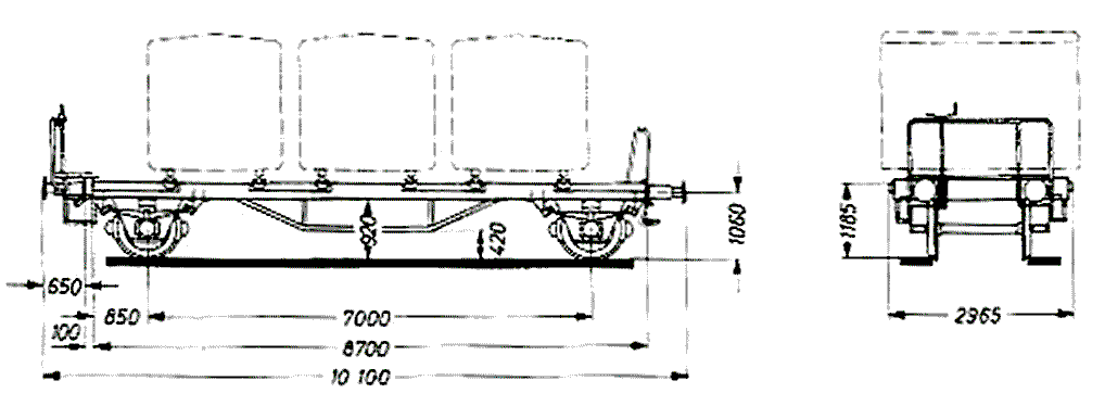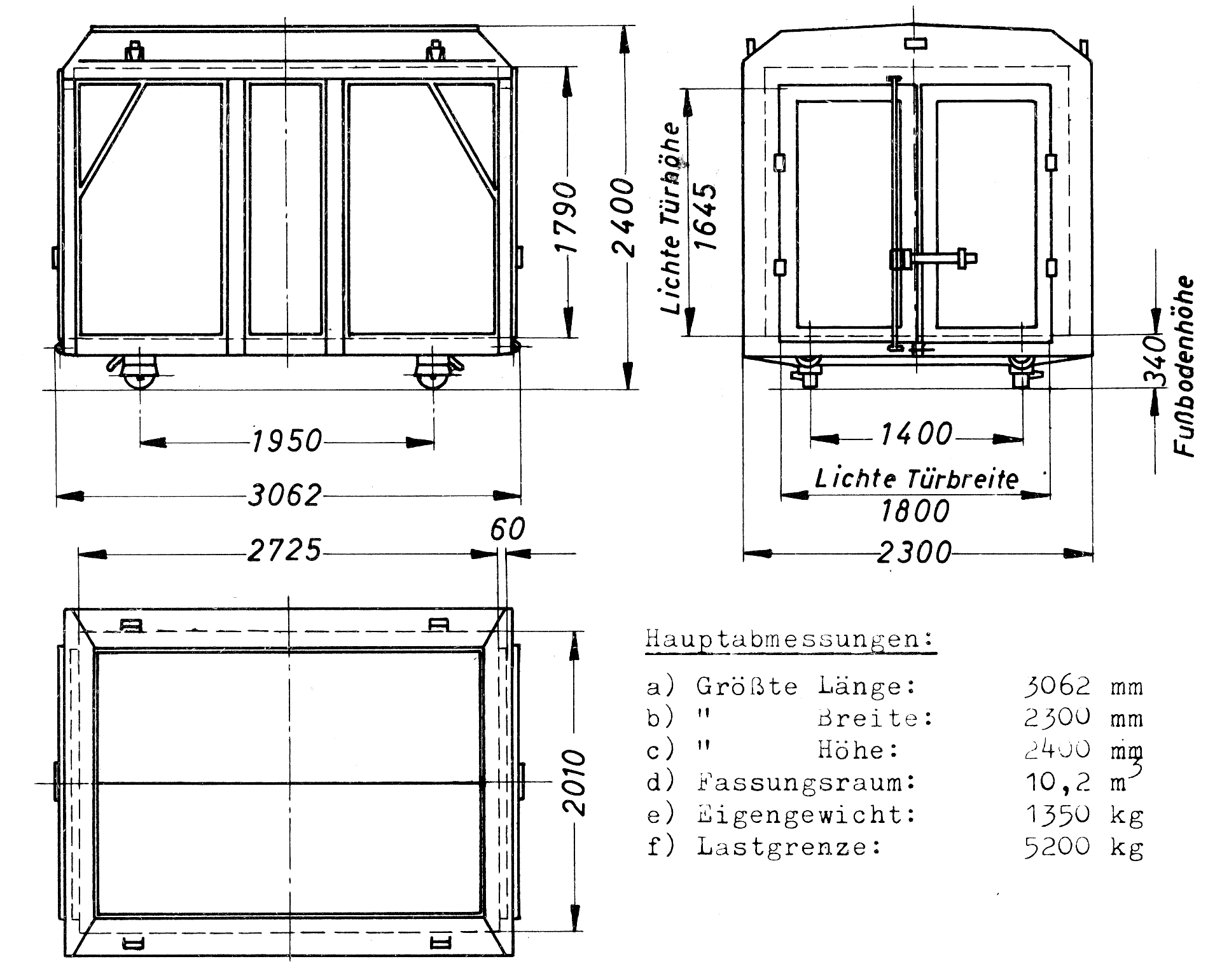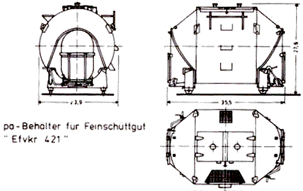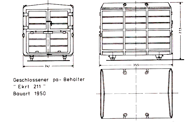 Es gab auch Behälter mit eher wannenförmigem Querschnitt und glatten Seitenklappen, die Eokrt 011.