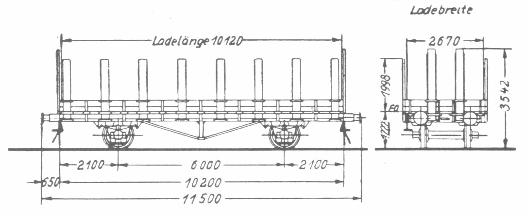 Genietet: Gebaut ab 1926. Ausgemustert bis 197?. Ladegewicht 15.000 kg, Tragfähigkeit 17.500 kg. 11 Blatttragfedern, Federlänge 1.100 mm. Musterzeichnung 2 R 01.000 (ohne Handbremse) bzw. 1 R 01.000 (mit Handbremse).