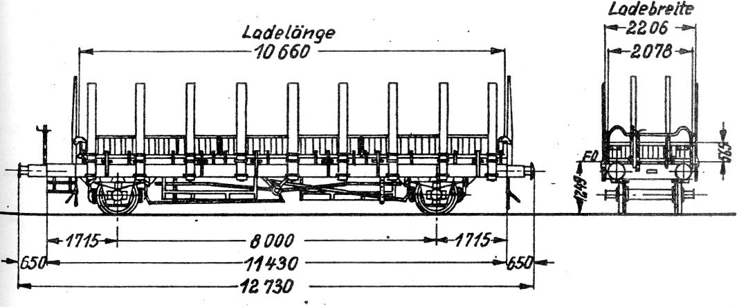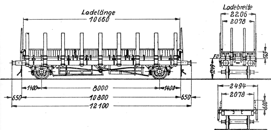Geschweißt: Gebaut ab 1936. Gewichte wie oben. 9 Blatttragfedern, Federlänge 1.650 mm. Musterzeichnung Fw 22 899a.