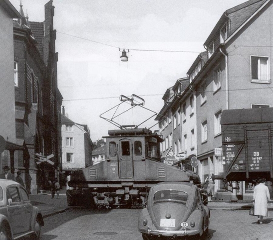 Bleiben ein paar Worte zu den Fotos: Einfach toll! Hier ist wirklich alles dabei, um einem das Wasser im Mund zusammenlaufen zu lassen: Straßenbahn (auch mal der eine oder andere Personentriebwagen irgendwo im Bild), Industrie, Autos oder auch einmal die "große Bahn" (mein Favorit: Ein Triebwagen auf einer Kopfsteinpflasterstraße unter einem Übergabezug der DB, der mit einer 86 über eine Brücke rollt). Auch toll: "Eine Reise in 48 Bildern ..." (aus der auch Bild 2 stammt).
