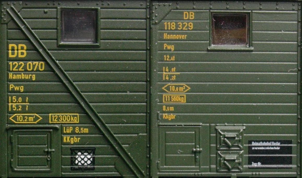 War doch klar, daß es nicht lange dauern würde, bis ein begeisterter Ermel sich einen zweiten Brawa-Pwg pr 14 leistet. Und das Modell mit den typischen "A-Streben", wie sie von der DB ab Anfang der 1950er Jahre eingebaut wurden, kann man ja auch wirklich zahlreich gebrauchen. Brawa hat eine Version ohne Gasbeleuchtung und ohne Fenster in den Schiebetüren gewählt, was typisch, aber durchaus nicht zwingend war. Die weißen Anschriften werden bei mir noch "vergilben", auch das geschlossene Lastgrenzraster muß für 1955 weichen; die Zettelhalter werde ich aber dranlassen, obwohl sie für beheimatete Wagen untypisch waren. Stichwort Beheimatung: die muß der Wagen dann natürlich auch noch kriegen. Schade, daß Brawa bisher keinen A-verstrebten Pwg für die frühe Epoche 3 gemacht hat ...