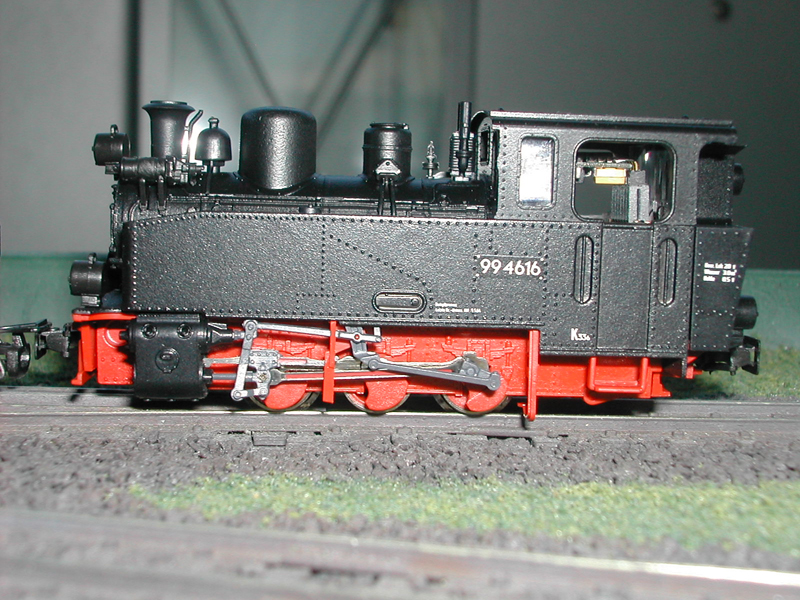 Die Lok gibt es zwar mit dieser Beschriftung nicht, dafür sind die Proportionen für einen Privatbahn C - Kuppler sehr gut getroffen und wirken durchaus realistisch. Ein Eigentümerlogo ist fortgelassen worden. Das Fahrverhalten mit dem eingebauten Kühn Decoder N025 ist sehr weich. Die voreingestellten Werte gereichen dem Maschinchen zu sehr guten Fahreigenschaften. Die Höchstgeschwindigkeit ist auch nicht zu hoch eingestellt, was angenehmerweise auch nicht zur Raserei verführt. Insgesamt also ein prima für mein eigenes, im Aufbau befindliches Bahnunternehmen "Leinhäuser Kleinbahn" (LKB) geeignetes Triebfahrzeug!