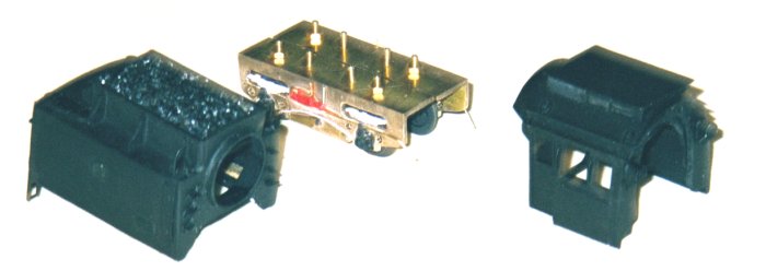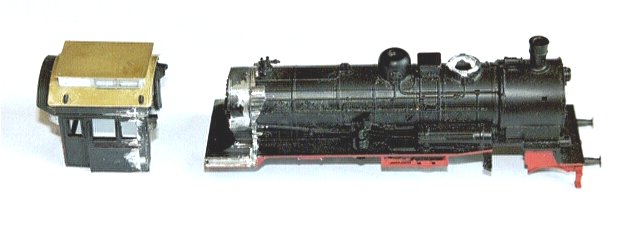 Von dem Gehäuse wurde das hinten offene Führerhaus entfernt. Dazu wurde eine Kleinbohrmaschine mit Trennscheibe benutzt. Die restlichen Metallteile wurden abgeschliffen und abgefräst. Der vordere Dampfdom wurde bis auf die Höhe des Kessels abgefräst. Die Wagner-Leitbleche wurden abgenommen.