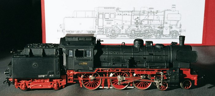 Der Wunsch war, die umgebaute Lok auf der Wechselstrom-Anlage einsetzen zu können. Verwendet wurde eine [alte] Märklin BR 38. Diese Lok besticht nun gewiss nicht durch Detailtreue. Sie hat aber gegenüber einer Ausführung anderer Hersteller den großen Vorteil, dass der Antrieb in der Lok selbst untergebracht ist und damit keine Änderungen an dieser Komponente nötig sind. Insgesamt habe ich bei der Realisierung des Modells eher Wert auf den Gesamteindruck gelegt. Dabei spielten natürlich auch die begrenzten Möglichkeiten der Bearbeitung und einer Detaillierung eine Rolle.