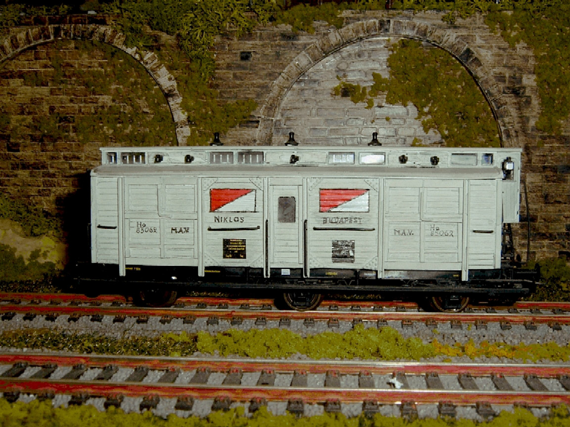 Das Modell entstand aus einem pr. Dreiachser von Roco (Laufwerk, Laterne, Bremserhaus), der Wagenkasten ist ein kompletter Selbstbau.