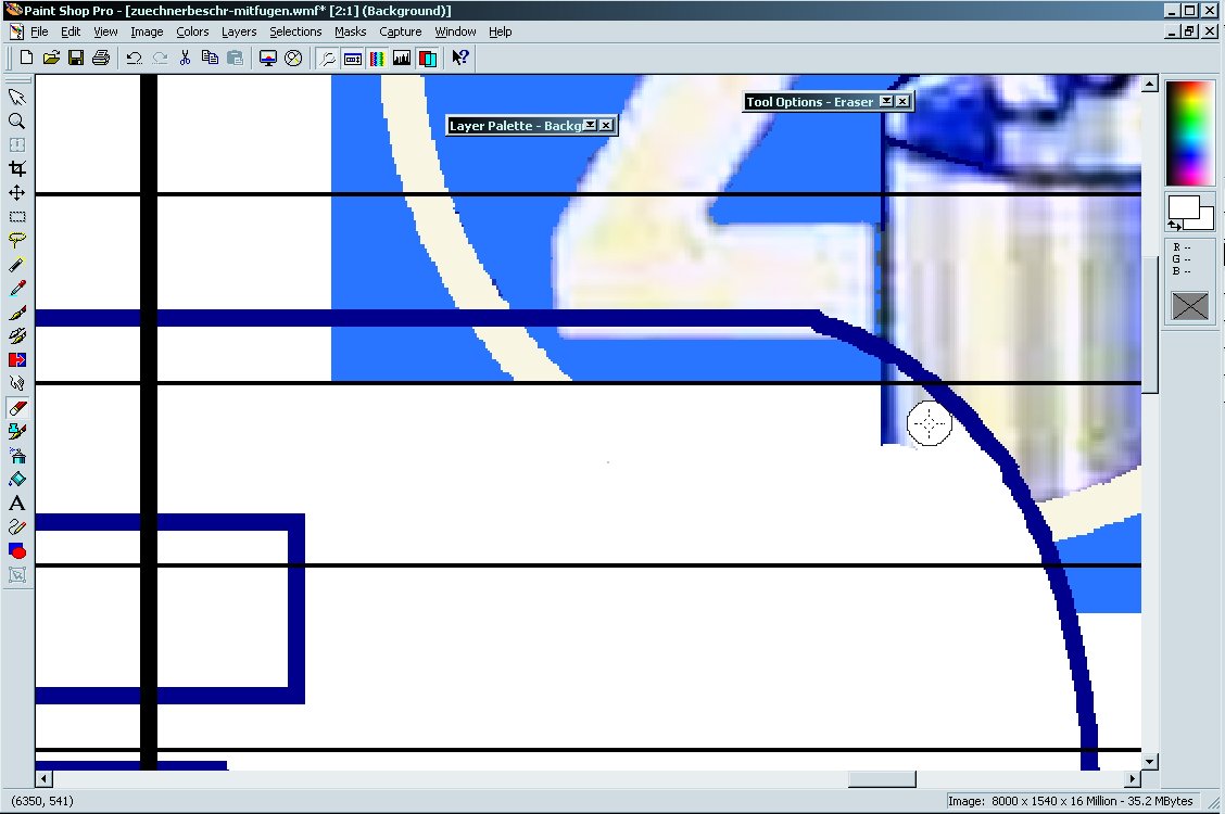 Das ist der Moment, wo der Hund das Wasser läßt: wer jetzt knausert, kann die verlorene Qualität nie wieder zurückholen. Entsprechend großzügig war ich also: 8.000 mal 1.540 Pixel, das reicht auch für einen Ausdruck in Baugröße 0. Kleinermachen kann man immer...