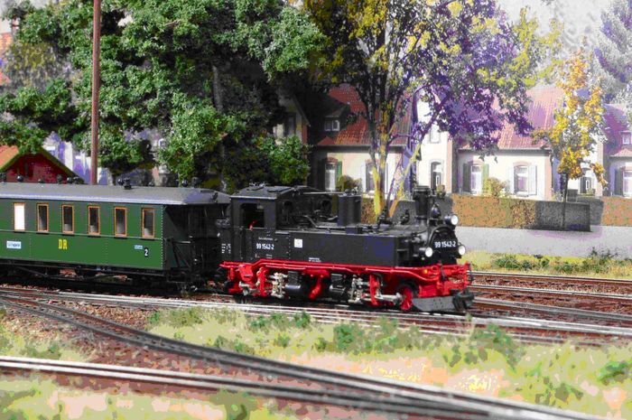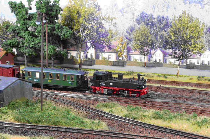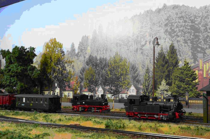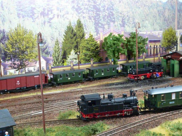 Herrlich, wenn man nahezu unbegrenzten Platz und auch die notwendigen Geldmittel hat, um seinen Modellbahntraum auszuleben! Bei mir trifft leider beides nicht zu seufz. Aber auch mit wenig verfügbarem Platz und schmalen Geldbeutel lassen sich Modellbahnträume verwirklichen, zumal meine beiden "Sachsen" ja auch Schmalspur-Lokomotiven sind.