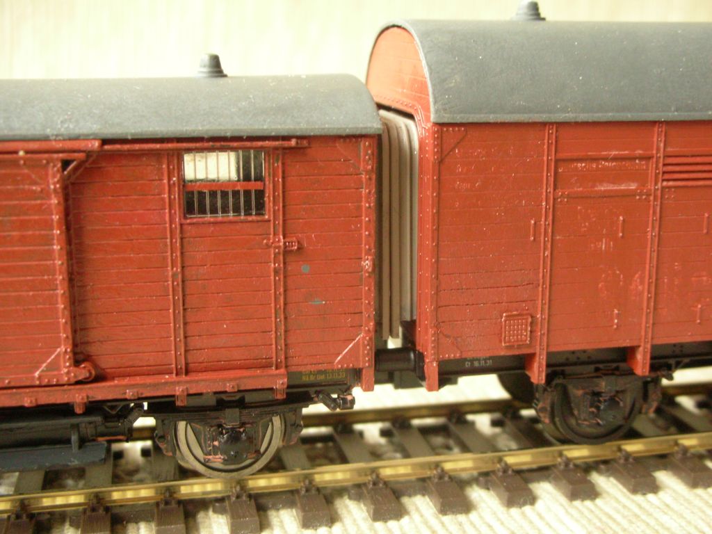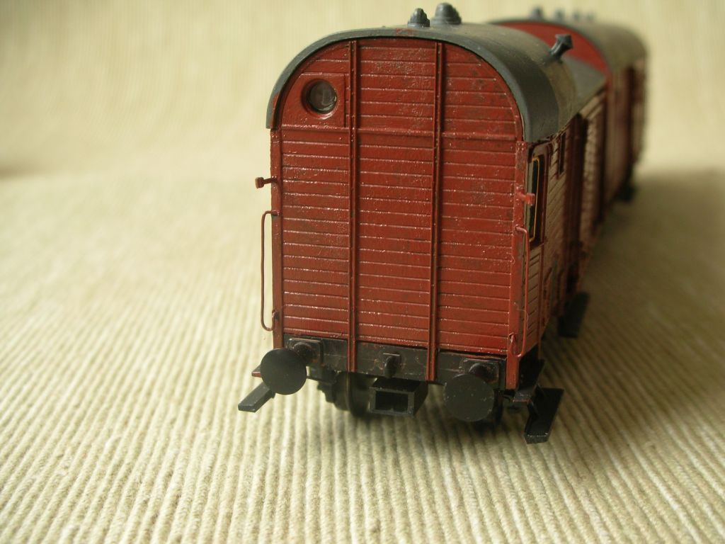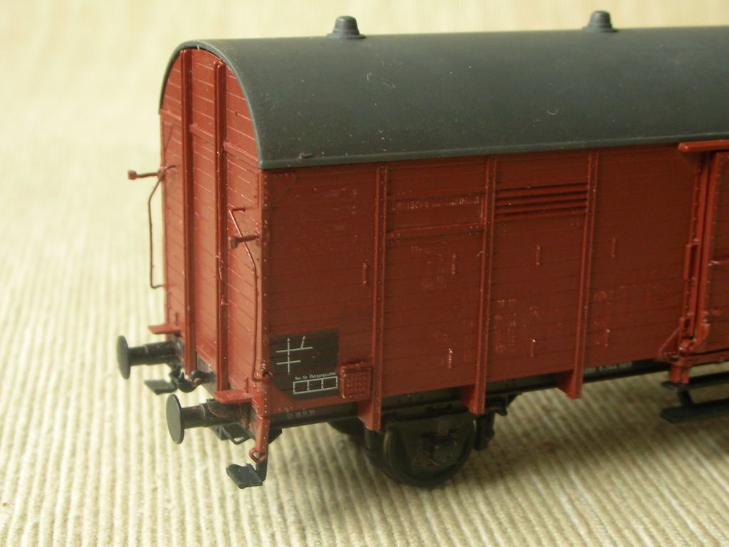 Etwas später kam die Pwg+Gl-basierte Leigeinheit dann auch in einer Epoche-3-Version raus (Bestellnummer 5935). Hier hatte dann der ex-Pwg schon die richtige Farbe, aber schon gekürzte Trittstufen und (leider) auch die für DB-Wagen eher untypisch angeordneten Kastenverstärkungen, während der ex-Gl mit Fenstern statt Ladeklappen daherkam. Ansonsten "gilt" dieser Umbauvorschlag auch für das DB-Modell weitgehend, zumindest solange, bis ich auch mal ein solches in die Finger bekomme ;-)