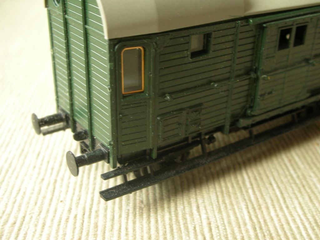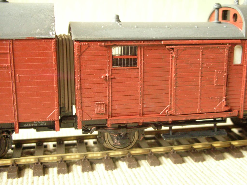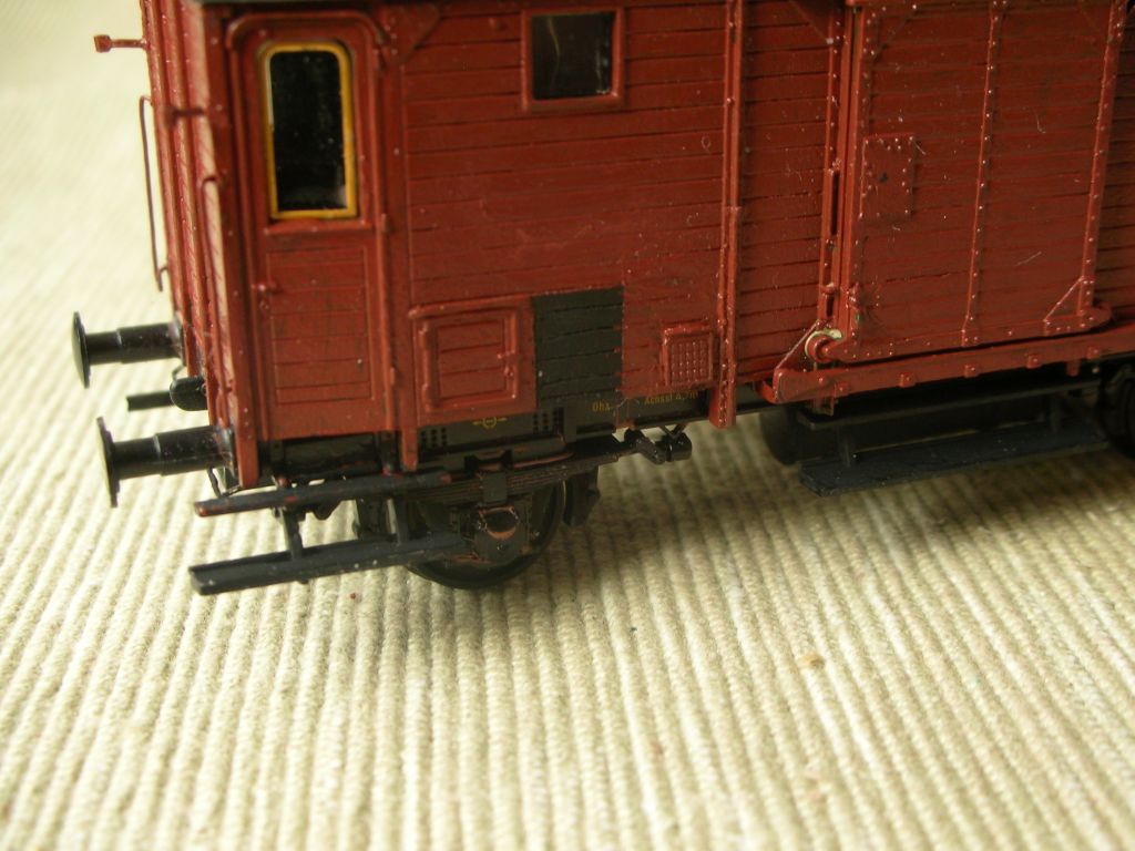 Achja, und wer von den Dächern die Lüfter der Gasbeleuchtung entfernt hat, der sollte natürlich auch die Gasbehälter von den Fahrwerken zupfen. Und keine Lichtmaschine nebst Batteriekasten nachrüsten, denn die gab es zwar bei jüngeren Leigeinheiten durchaus, aber bei denen mit einem ex-Pwg wenn, dann nur sehr selten. Beleuchtet wurden die dann übrigens, wie Pwg auch, mit einer Lichtstromleitung von der Lok her.