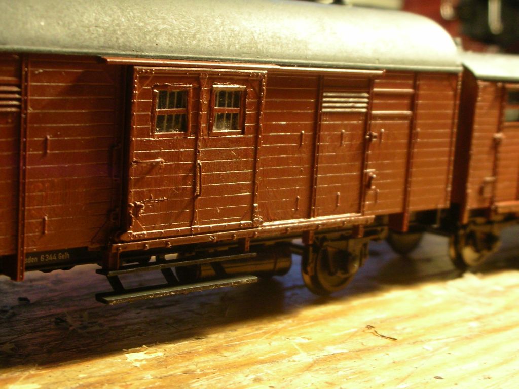 gleich den schicken Bogen an ihrem unteren Ende. Und schon war's das -- Wagenkasten braun lackieren,