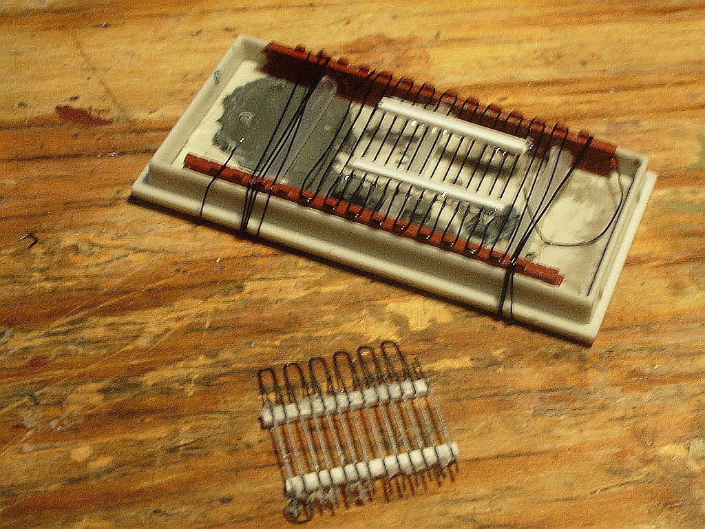 Bastelladen) im Zickzack drauf, klebt mit noch mehr Sekundenkleber die Querstreben aus PS drauf,