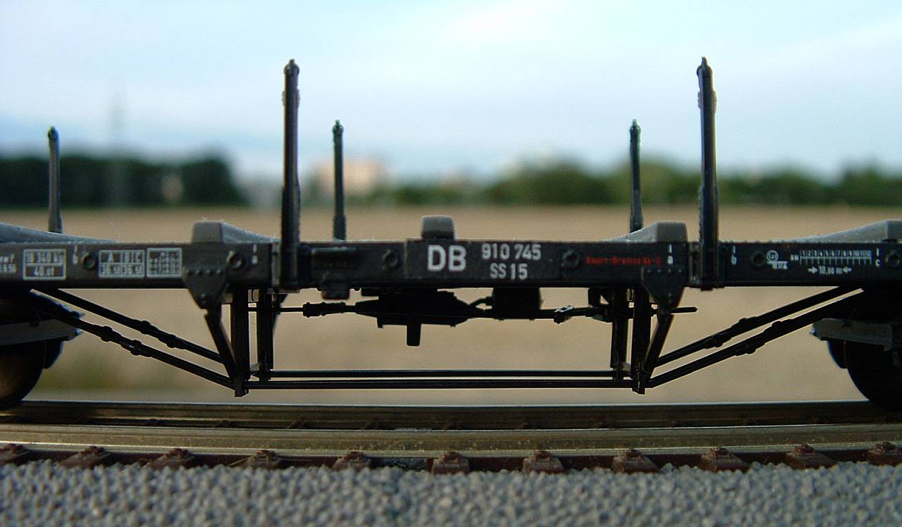 Es bleiben über: ein SSk 07 ohne Drehgestelle und ein Paar Drehgestelle nach Zeichnung Ci 149. Nein, meines Wissens gab es diese Kombination nicht, aber Kopf hoch: für den SSk 08 brauchen wir genau diese Drehgestelle, aber auch die Rungen und das Bremserhaus des SSk 07 (den man deswegen am besten in der Reichsbahn-Version kauft). Und den Rest, nämlich Rahmen und Sprengwerk des Fleischmann-Wagens, kann man ja immer noch zu fotogenem Schrott verarbeiten ...
