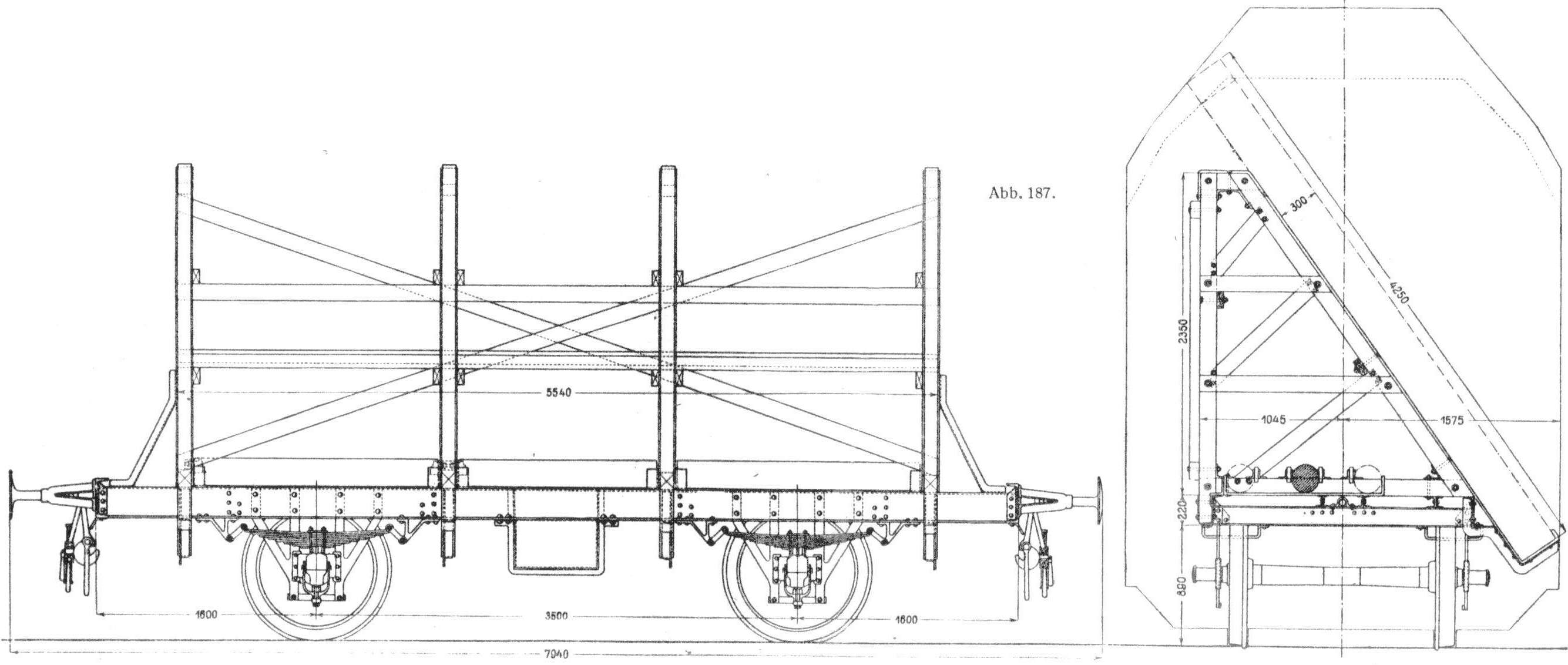 Dieser Wagen wurde für den Transport von Spiegelglaskästen gebaut. Um das Lichtraumprofil optimal ausnutzen zu können, wurde das Ladegestell schräg gestellt. Damit die Achsen nicht ungleich belastet wurden, befanden sich auf dem Rahmen verschiebbare Gewichte. Der Wagen war ungebremst.