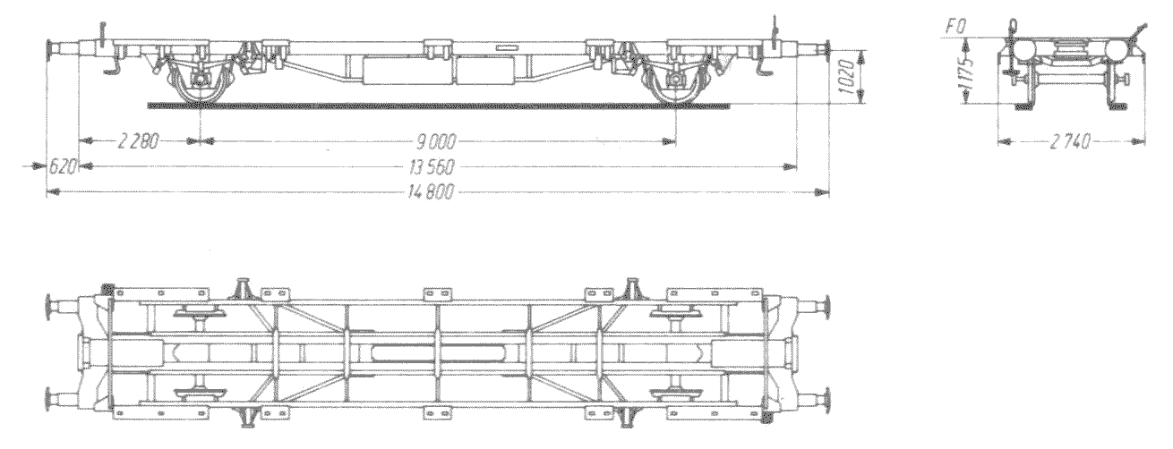 Wagen mit Langhubstoßdämpfer für pa-Behälter und Transcontainer.