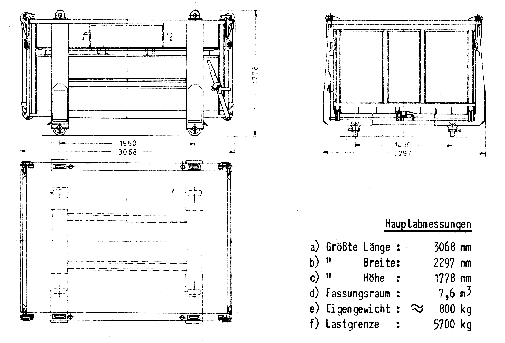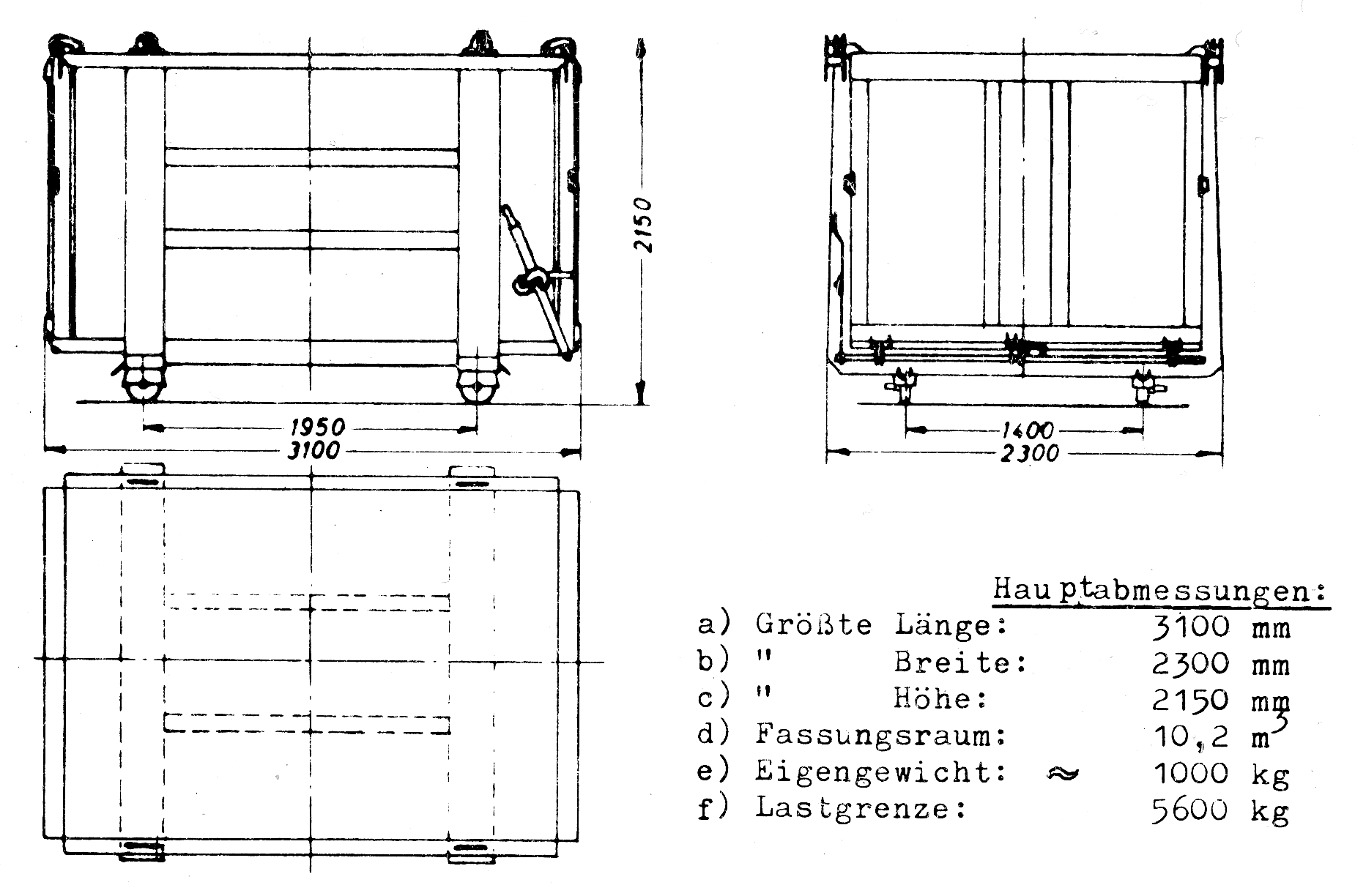 Es gab auch Behälter mit eher wannenförmigem Querschnitt und glatten Seitenklappen, die Eokrt 011.