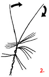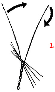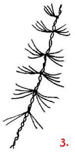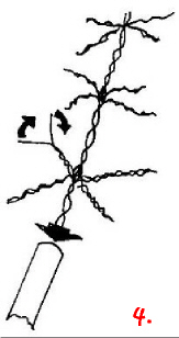 Nun werden von den Ästen immer zwei miteinander verdrillt. Idealerweise immer ein Anfang und ein Ende; das muß aber nicht sein und geht auch nicht, wenn 4 Enden auf 6 Anfänge stoßen oder so.