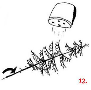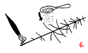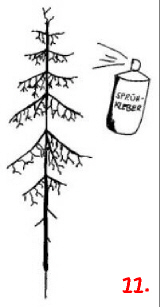 Wieder wird gesprüht! Diesmal allerdings mit Srühkleber. Dabei sollte der Baum so gehalten werden, daß nur die Äste Klebstoff abbekommen, der Stamm aber nicht. Eventuell schützt man Teile des Baumes mit einem Stück Papier.