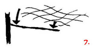 Man schneidet ein passiges Stück (rechteckig, 2 oder 4 Maschen breit, auf jeden Fall eine gerade Anzahl) aus dem Netz aus und klebt es (wie im Bild zu sehen) mit dem mittleren Faden auf den Ast.