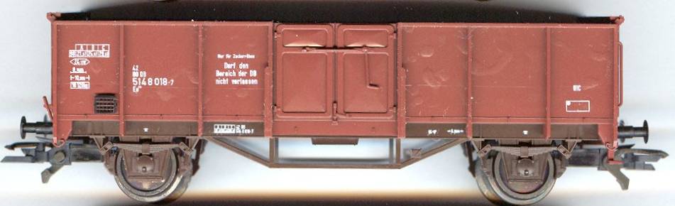 Auf meiner Suche nach Klein-Modellbahn-Omm 52 (wunderschönes Modell, leider nicht mehr neu zu kaufen) sind mir bis jetzt fast nur Rübenwagen über den Weg gelaufen, Wagen also, die dem letzten Zustand bei der DB in den 80er Jahren entsprechen: meist mit DB-Zeichen, oft mit dem Hinweis "Darf den Bereich der DB nicht verlassen" und immer mit der Anschrift "Nur für Zuckerrüben".
