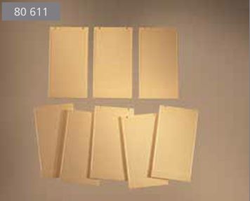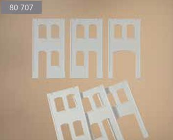 Eigentlich ganz einfach: links die Zeile mit dem passenden Wandteil nach Bild oder Beschreibung heraussuchen, oben die Spalte mit der passenden Farbe und Formvariante, und dann in der so gefundenen Tabellenzelle sich entweder über ein "fehlt" ärgern oder dreierlei ablesen: den Code des Bauteils (z.B. 2342M), die Stückzahl pro Packung (z.B. 8) und die Bestellnummer der Packung (z.B. 80611). Dieses dritte Feld mit der Bestellnummer erstreckt sich bei einigen Teilen über mehrere Zeilen: dann sind diese verschiedenen Teile in der jeweils angegebenen Stückzahl zusammen in der Packung.