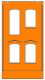 | Unten Tür rechts und Fenster, oben 2 kleine Fenster |