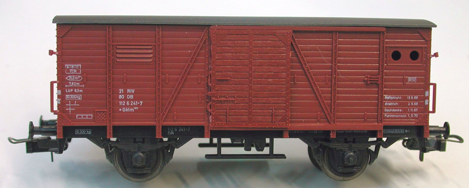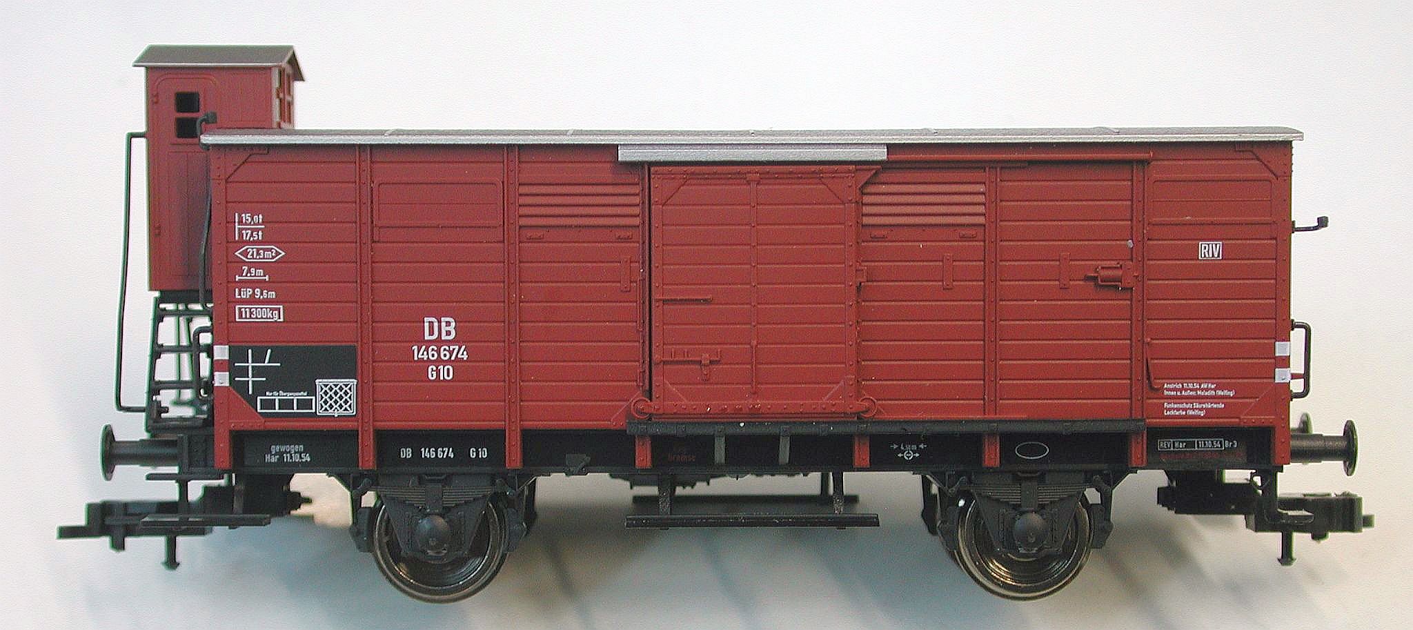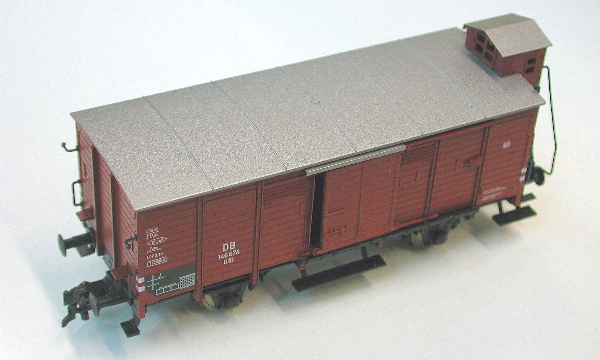 Und als wäre das nicht schon geil genug, sind auch noch die Schiebetürgriffe freistehend angespritzt. Und hinter der offenen Schiebetür hat der Röwa-Wagen auch einen Wagenboden auf der richtigen Höhe, ohne die störende Türschwelle wie oben bei Fleischmann oder -- noch ausgeprägter -- bei Märklin.