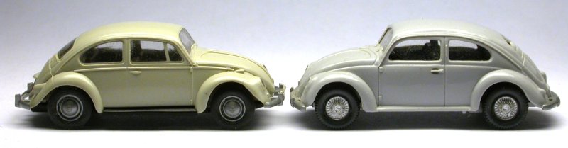 Brezel- und Ovalfensterkäfer sahen auch von vorn deutlich anders aus als jüngere, die Form der Windschutzscheibe ist ganz anders. Ein Modell aus dieser Generation wäre also schon sehr wünschenswert. Allerdings würde ich da nicht das "Urmodell", also KdF-Wagen/Brezelkäfer bis '51, anraten, sondern den Ovali (und vielleicht davon abgeleitet eine '52er "Zwitterbrezel"), denn die waren sehr viel häufiger, und man hat bekanntlich ja auch gern ältere Käfer durch Herausschneiden des Brezelfenster-Mittelstegs optisch modernisiert damals.