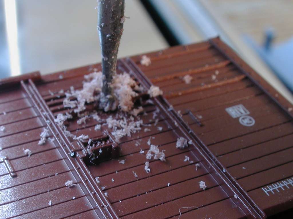 Die Ladeluken sind übrigens schneller mit der erwähnten senkrechten Skalpellklinge weggeschnitten als weggefräst. Ach ja: selbstredend weiß ich, daß ein Großteil meiner mühsam geritzen Bretterfugen im nächsten Schritt, beim Fenster-Einbau, wieder rausfliegt. Ich ritze sie trotzdem komplett: erstens macht nämlich Übung den Meister, und zweitens fehlt auf die Art nach dem Fensterbauen garantiert keine Fuge.